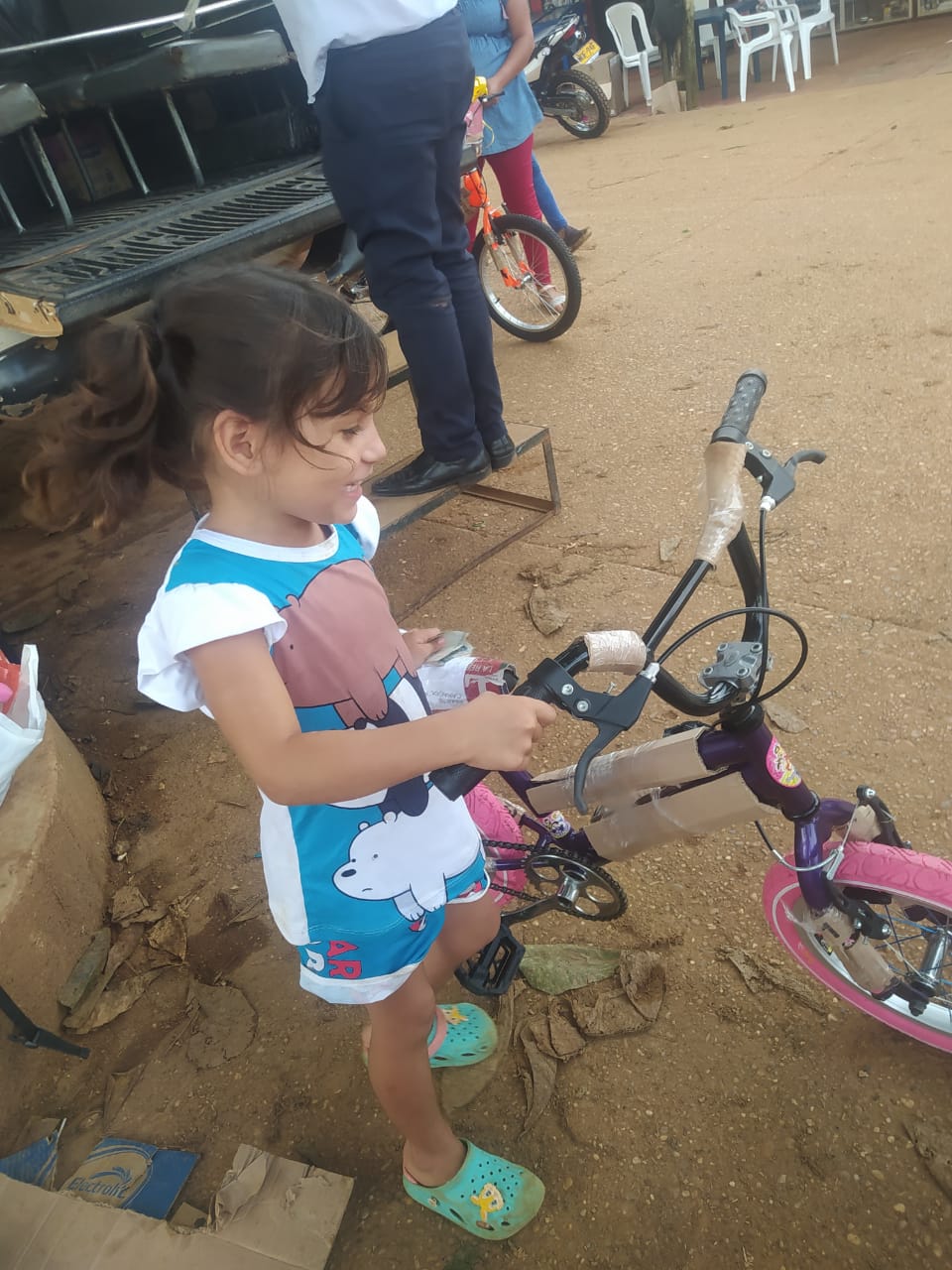 Con la frase “¡Quien quiere bicicleta!” Érica Alejandra Londoño gerente, y el equipo de la empresa de comunicación, impuso su compromiso solicitando el apoyo con bicicletas a los líderes políticos y particulares, la mayoría de buen corazón, y así cumplir un sueño llevando felicidad a innumerables niños de la zona urbana y rural del departamento del Guaviare.