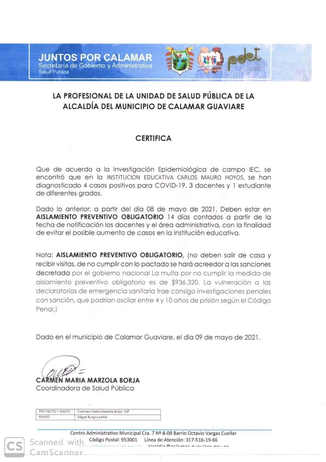 21 mayo, 20210Alcaldía de Calamar en confinamiento por Covid-19