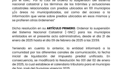 San José del Guaviare suspende el sistema catastral por resolución del IGAC
