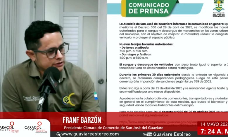 A través de una comunicación formal dirigida al alcalde de San José del Guaviare, un grupo de comerciantes del municipio expresó su preocupación por las consecuencias negativas que ha generado la reciente implementación del Decreto 060 del 29 de abril de 2025, especialmente en lo relacionado con las restricciones a la movilidad nocturna y el tránsito de vehículos de carga pesada.