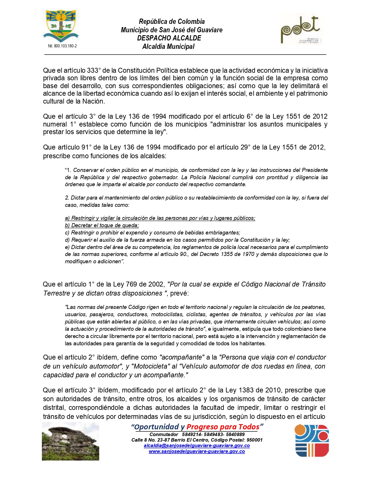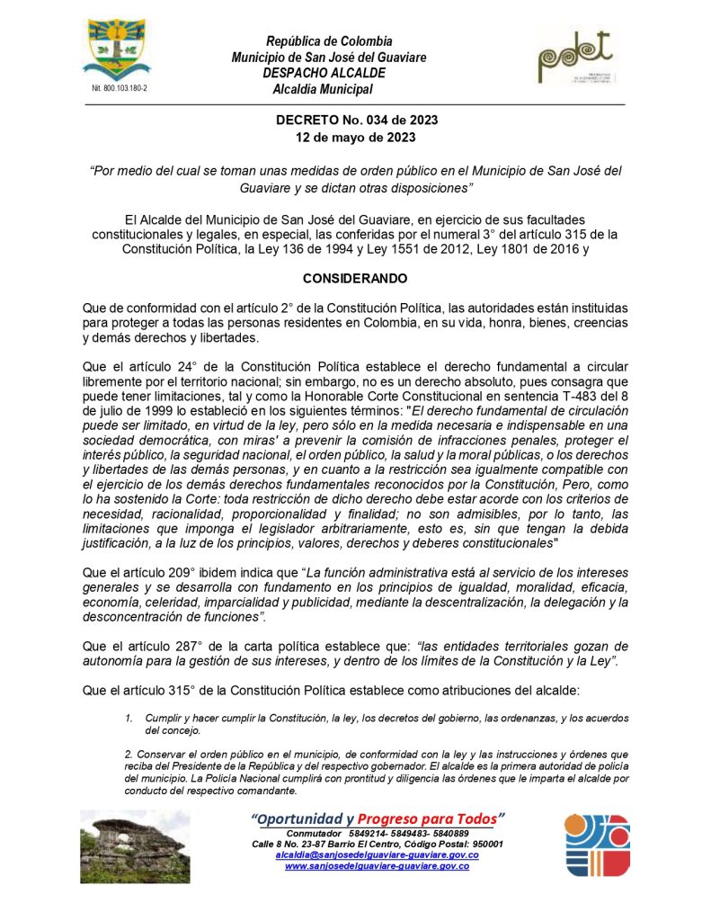 Según las autoridades, durante estos días será restringida la circulación de personas y vehículos en todo el territorio del municipio de San José del Guaviare en los siguientes