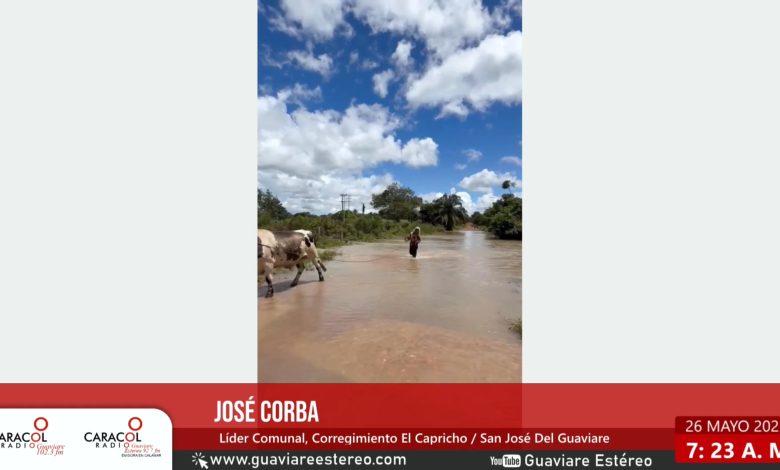 Las intensas lluvias que azotan la zona rural de San José del Guaviare han provocado el desbordamiento del caño Capricho, dejando incomunicadas a las veredas El Cristal, Picalojo y Cachicamo.