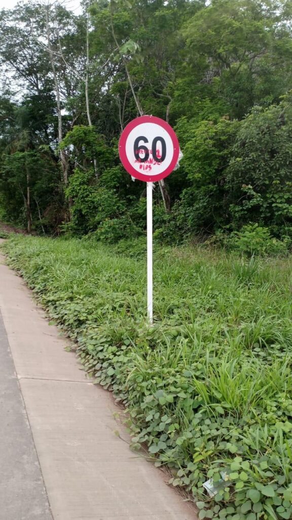 Pintando letreros en los avisos de señalización alusivos a las Disidencias de las FARC, donde dicen “Frente Armando Ríos” buscan intimidar a los contratistas que desarrollan obras de pavimentación de la vía nacional San José del Guaviare – El Retorno.