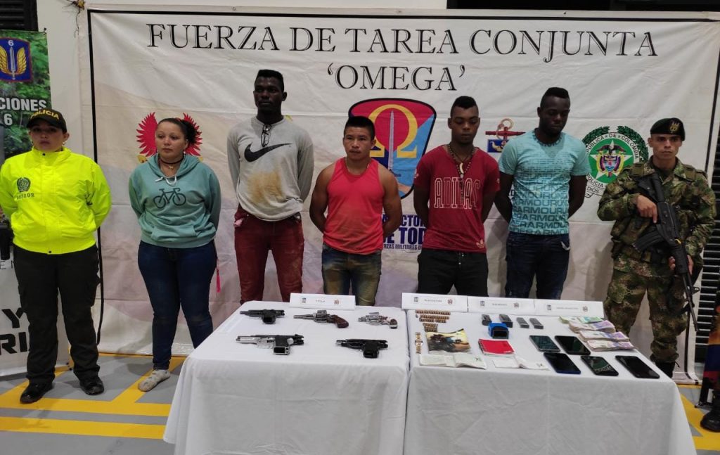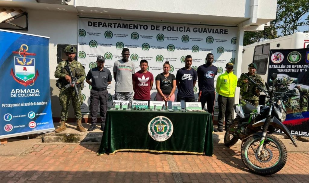 Los cinco sujetos fueron capturados por su presunta responsabilidad en los delitos de concierto para delinquir agravado y porte, fabricación, tráfico y/o tenencia de armas de fuego. El personal y el material fueron puestos a disposición de la autoridad competente para continuar su proceso de judicialización.