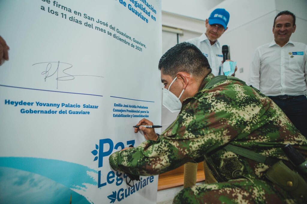 “Esta decisión que usted ha tomado hoy como gobernador, en nombre de los alcaldes y de los ciudadanos de este departamento es un acto de fe para cambiar el futuro, entendiendo que entre todos vamos a eliminar las condiciones que generaron tanta violencia y dolor en el Guaviare; vamos a construir un mejor departamento y país para nuestras niños y niñas y las nuevas generaciones”, dijo el Consejero Emilio Archila, tras la firma simbólica del documento en la sede regional del SENA.