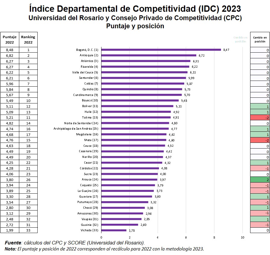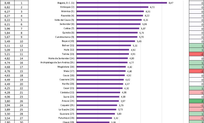 Uno de los resultados más importantes de la medición es el deterioro observado del desempeño competitivo en una buena parte de los departamentos.