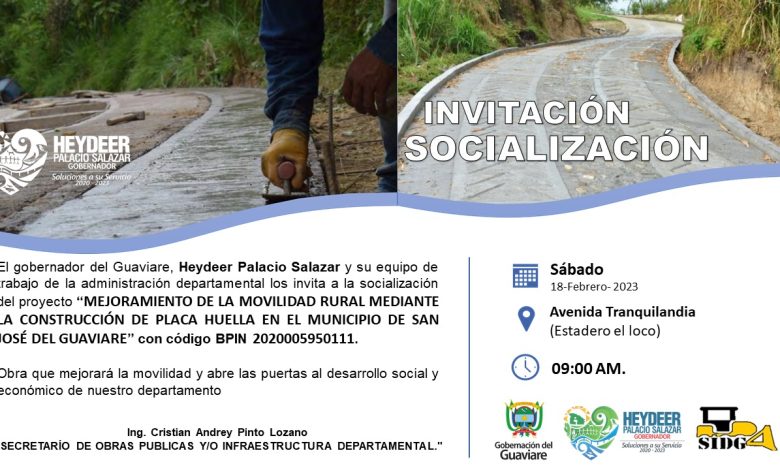 La Socialización se realizará el sábado 18 de febrero de 2023 a las 9 am, en el Estadero “El Loco”, avenida Tranquilandia. Otro proyecto similar se socializará el mismo día a las 11 y 30 de la mañana en la Caseta Comunal de la Vereda Cerro Azul.