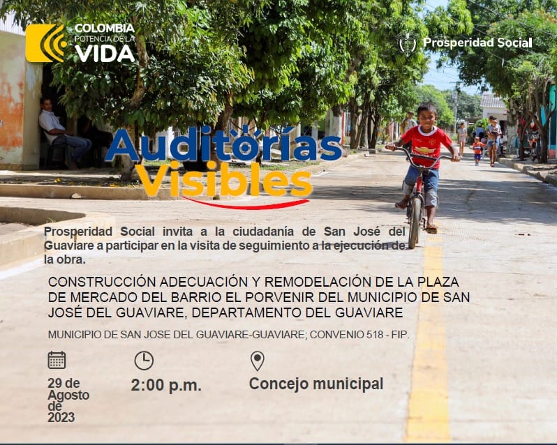 Por esa razón Prosperidad Social llevará a cabo con la ciudadanía de San José del Guaviare a participar de la visita de seguimiento a la ejecución de la obra consistente en la construcción y remodelación de la plaza de mercado campesino del barrio Porvenir que se construye en esta capital.